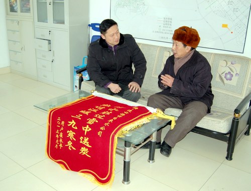 當(dāng)天中午,崔大爺還沒回到家,維修人員就已經(jīng)到了他家開始維修了。崔大爺感謝地說:“你們的維修人員也都是50多歲的人了,趴在雪地上,手直接插入冷水里,我看著都冷。我讓他進(jìn)屋吃口飯,他堅(jiān)持不去!睘榱讼蚬颈硎靖兄x,崔大爺特意制作了錦旗,送到了公司。