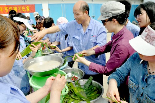 為豐富公司員工的生活,紀(jì)念我國(guó)傳統(tǒng)節(jié)日,6月8日下午在公司院內(nèi)舉辦迎端午包粽子比賽。一片片清香的粽葉,一粒粒晶瑩的糯米,一顆顆飽滿(mǎn)的蜜棗,在一雙雙巧手下很快就變成了各種樣式的粽子,經(jīng)過(guò)近三十分鐘的比賽,前三名依次產(chǎn)生,其中技術(shù)部葛建軍獲得了比賽的第一名,成為包粽子巧手;王秀華、徐艷玲分別獲得二、三名。