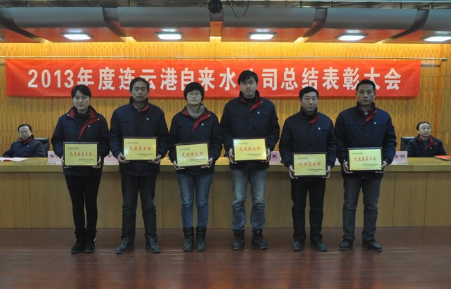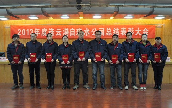會上,公司總經理侯洪峰作2013年工作總結,連云供水公司、海州水廠、馮士山、孫永波等一批先進集體和職工標兵受到了表彰。最后,公司董事長常靜、市城鄉(xiāng)建設局副局長滕秀元分別致辭,向受到表彰的先進集體和優(yōu)秀員工表示熱烈的祝賀,并共同希望公司在2014年再創(chuàng)佳績。
