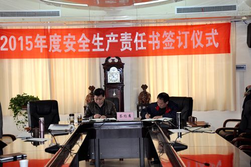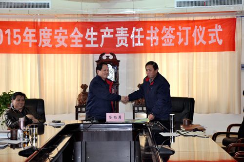 為認(rèn)真貫徹落實(shí)安全生產(chǎn)責(zé)任制,2015年1月16日,公司舉行2015年度安全生產(chǎn)責(zé)任書簽訂儀式,總經(jīng)理侯洪峰分別與各單位、部室的負(fù)責(zé)人簽訂了2015年度安全生產(chǎn)目標(biāo)責(zé)任書。