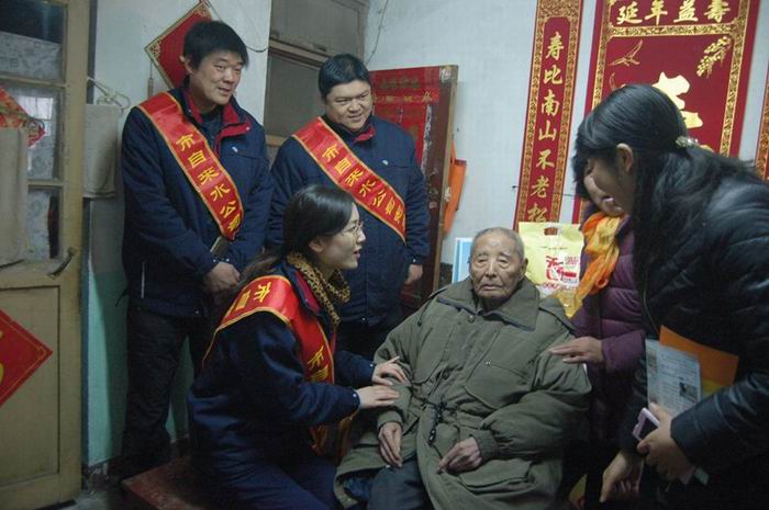 “楊大爺,你家水管還正常嗎?”今年81歲的楊光斗與老伴居住,平時子女在外打工,老兩口只有城鎮(zhèn)居民基礎(chǔ)養(yǎng)老金,需要依靠子女養(yǎng)老。市自來水公司“小白鴿”服務(wù)隊(duì)為老人送上大米、食用油等物品,并幫老人家檢修供水管道!捌綍r多注意用水,天冷要做好防凍措施。”志愿者告訴楊大爺。