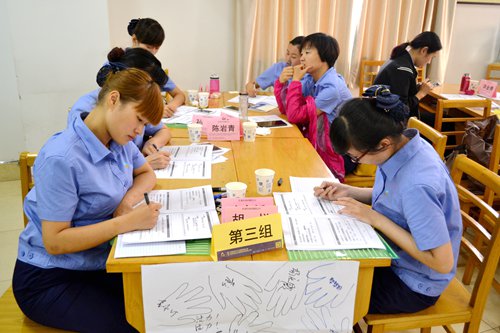 為進(jìn)一步強(qiáng)化員工的服務(wù)意識(shí),規(guī)范服務(wù)行為,提升抱怨投訴處理能力,6月25日至27日,公司組織了為期兩天半的《專(zhuān)中有范-窗口人員服務(wù)標(biāo)準(zhǔn)化強(qiáng)化訓(xùn)練》的課程培訓(xùn)?头行、新海營(yíng)業(yè)所、連云供水公司、新海管線(xiàn)所等部門(mén)窗口、熱線(xiàn)、投訴業(yè)務(wù)處理50余人參加培訓(xùn)。