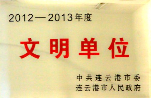 年度文明單位創(chuàng)建評比工作中,榮獲由中共連云港市委、連云港市人民政府頒發(fā)的“連云港市文明單位”稱號。