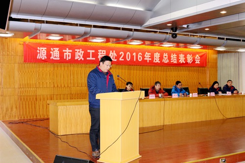 會(huì)上,源通市政工程處黨支部書記、主任李軍同志作《源通市政工程處2016年度工作總結(jié)》,對(duì)源通2016年度生產(chǎn)經(jīng)營管理、安全質(zhì)量管理、客戶服務(wù)、黨團(tuán)建設(shè)等方面工作進(jìn)行了全面總結(jié)與回顧,指出2016年是源通市政工程處壓力與動(dòng)力同在的一年,在公司領(lǐng)導(dǎo)班子的正確領(lǐng)導(dǎo)下,源通全體員工攻堅(jiān)克難,群策群力,較好地完成了總公司下達(dá)的各項(xiàng)指標(biāo);在總結(jié)成績和經(jīng)驗(yàn)的同時(shí),李軍主任也對(duì)源通市政工程處在2016年度工作中的薄弱之處進(jìn)行了深刻剖析,希望2017年源通全體員工團(tuán)結(jié)一心、緊盯目標(biāo),認(rèn)真扎實(shí)工作,為實(shí)現(xiàn)源通可持續(xù)發(fā)展而努力奮斗。源通工會(huì)主席、副主任任學(xué)斌同志作《源通市政工程處2016年工會(huì)工作總結(jié)》,對(duì)源通2016年度工會(huì)工作進(jìn)行了詳細(xì)的匯報(bào),并對(duì)下一年度工會(huì)的工作提出了明確要求,希望全體員工充分展現(xiàn)自身聰明才智,推進(jìn)企業(yè)文化建設(shè),增強(qiáng)企業(yè)凝聚力和戰(zhàn)斗力。源通財(cái)務(wù)總監(jiān)潘琴同志作《源通市政工程處2016年考核工作總結(jié)》,對(duì)源通2016年度月度績效考核實(shí)施、員工考核評(píng)優(yōu)以及薪酬福利等方面進(jìn)行了系統(tǒng)地分析與總結(jié),對(duì)明年的考核工作提出了具體思路和目標(biāo)。