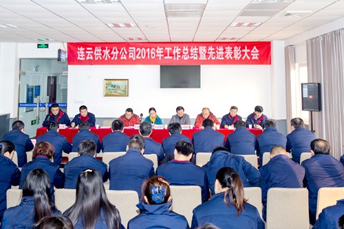 2017年1月10日下午,連云供水分公司在六樓職工食堂隆重召開2016年工作總結(jié)暨先進(jìn)表彰大會(huì),連云供水分公司全體職工(除輪班制職工)參加了會(huì)議,公司副總經(jīng)理包偉、營(yíng)銷部部長(zhǎng)喬芝忠、運(yùn)行管理部部長(zhǎng)趙海云及工程管理部部長(zhǎng)仝中軍應(yīng)邀出席會(huì)議。