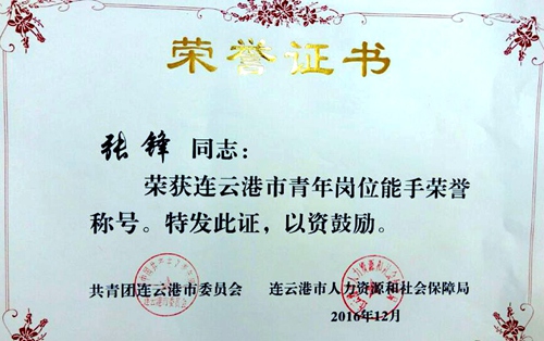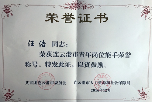 近日,由共青團連云港市委、連云港市人力資源和社會保障局共同組織開展的2016年度連云港市青年崗位能手評選活動揭曉。經(jīng)多種方式擇優(yōu)推薦和嚴格審核,公司第三水廠汪浩、人力資源部張鋒成功入選,被授予“連云港市青年崗位能手”稱號。