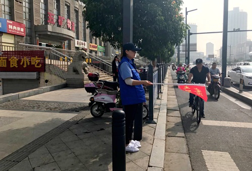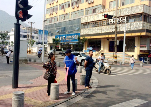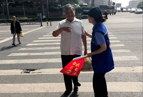 上午八時許,80名志愿者分成十個小組奔赴連云區(qū)十個交通繁忙路口,烈日炎炎下他們手持“各行其道、文明交通”字樣的小紅旗,每四人負責一個路口協(xié)助交警指揮疏導行人安全過馬路,勸阻、糾正行人和非機動車駕駛?cè)说牟晃拿鹘煌ㄟ`法行為,幫助老弱病殘等特殊人群安全過斑馬線;顒右恢背掷m(xù)到中午11:30,志愿者們用自己的無私奉獻踐行著文明傳播者的活動主旨,用微小的善舉傳播文明禮儀,成為東區(qū)百姓心中一道亮麗的風景線。