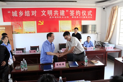 為充分發(fā)揮省文明單位的示范帶動作用,根據(jù)省文明辦、省扶貧辦《關于組織新一輪省級以上文明單位與經(jīng)濟薄弱村開展“城鄉(xiāng)結對、文明共建”活動的通知》精神,6月14日,在灌南縣三口鎮(zhèn)堯河村部會議室,公司與堯河村舉行了“城鄉(xiāng)結對、文明共建”活動簽約儀式。公司總經(jīng)理侯洪峰、副總經(jīng)理王斌、工會主席朱延安等領導同志及公司相關部室和單位人員參加了簽約儀式。