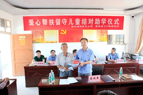 根據(jù)省文明辦、省扶貧辦《關(guān)于組織新一輪省級(jí)以上文明單位與經(jīng)濟(jì)薄弱村開展“城鄉(xiāng)結(jié)對、文明共建”活動(dòng)的通知》精神,6月14日,公司黨委組織的愛心幫扶堯河村10名留守兒童結(jié)對助學(xué)儀式在灌南縣三口鎮(zhèn)堯河村部會(huì)議室舉行。公司黨委書記侯洪峰、副書記王斌、黨委委員朱延安和公司基層黨支部書記以及客服中心代表出席了結(jié)對助學(xué)儀式。