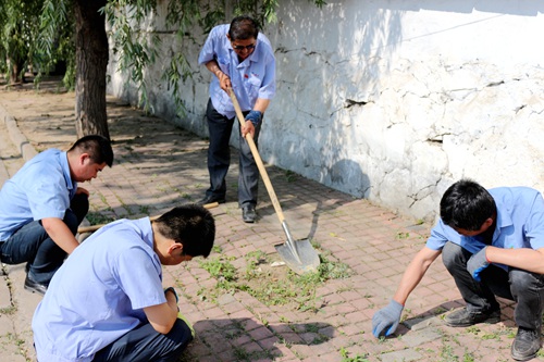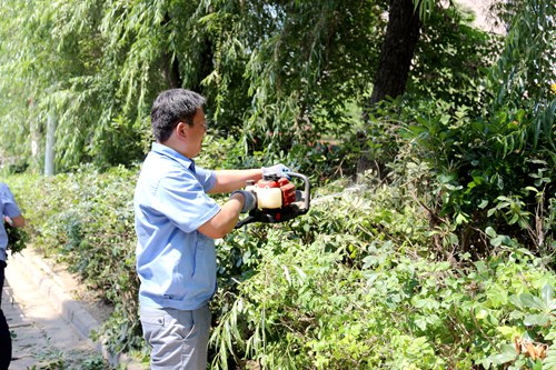當(dāng)天上午8:00,大家齊聚源通院內(nèi),帶著鐵锨、掃帚、修剪樹枝剪刀、垃圾推運(yùn)車來到天晴路積極投入到義務(wù)勞動(dòng)中去。面對(duì)樹木肆意瘋長,街道路面較為臟亂的環(huán)境,大家頭頂烈日,不怕苦,不怕累,揮汗如雨,清理路邊雜草垃圾,修剪花木樹枝,清除花壇雜物。當(dāng)天溫度高達(dá)33攝氏度,地面被曬的發(fā)燙,大家沿著天晴路清掃,不放過每一個(gè)衛(wèi)生死角,徹底清掃路面生活垃圾,凈化街道環(huán)境。為保證路邊綠化帶植被修剪整齊美觀,中途借助專業(yè)修剪機(jī)進(jìn)行修剪。通過一上午的辛勤勞動(dòng),天晴路變的整潔美觀,煥然一新。