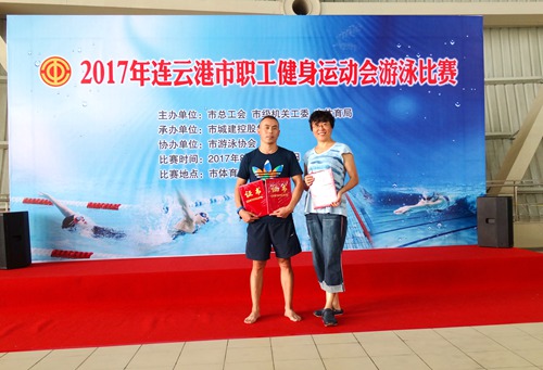 2017年全市職工健身運(yùn)動(dòng)會(huì)游泳比賽在市體育中心游泳館隆重舉行,來自全市各縣區(qū)、市屬各企事業(yè)單位和市級(jí)各機(jī)關(guān)的230多名游泳愛好者參加了此次比賽。經(jīng)過一番激烈的角逐,連云港自來水公司趙義峰同志獲得全市男子50米蛙泳第一、50米自由泳第三。