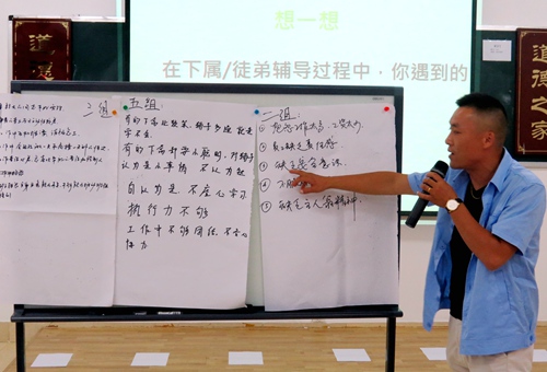 培訓(xùn)老師從對(duì)下屬輔導(dǎo)過(guò)程中遇到的問(wèn)題和挑戰(zhàn)入手,就任務(wù)交辦、任務(wù)跟進(jìn)及任務(wù)反饋等輔導(dǎo)流程進(jìn)行了講解。在練習(xí)傾聽(tīng)、提問(wèn)、說(shuō)服等績(jī)效反饋話術(shù)時(shí),全體學(xué)員在講師的引導(dǎo)下每三人一組分別扮演輔“導(dǎo)者、被輔導(dǎo)者和觀察員”,共同模擬了績(jī)效反饋的情景演練。通過(guò)小組案例討論和分享,學(xué)員快速的掌握了實(shí)地輔導(dǎo)流程和要點(diǎn)。