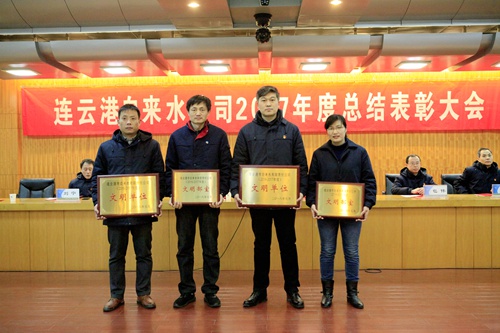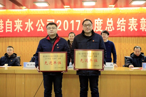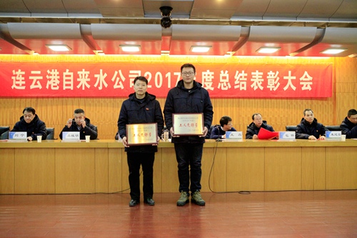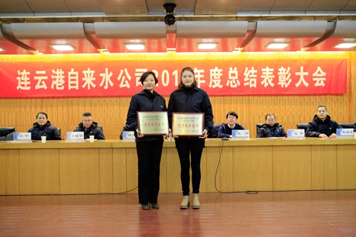 公司副總經(jīng)理包偉、黨委副書記王斌宣讀表彰決定,各級領導為受表彰的單位及個人頒獎。海州水廠張超作為先進個人代表、第三水廠廠長李家愛作為先進集體代表進行發(fā)言。