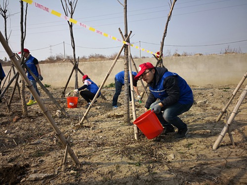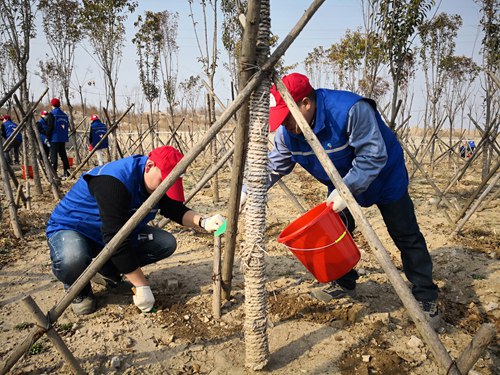 在這個特別的節(jié)日里,公司團(tuán)委組織80余名團(tuán)員青年開展共建“共青林”活動。公司“共青林”于2017年3月開始種植,共有櫻花樹、香花槐等7個品種700余棵樹木。