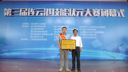 5月31日,第三屆連云港技能狀元大賽閉幕式在江蘇省經(jīng)貿(mào)技師學(xué)院報告廳隆重舉行,公司榮獲連云港市人民政府頒發(fā)的第三屆連云港技能狀元大賽“高技能人才搖籃獎”榮譽稱號。