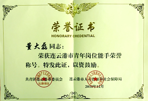 近日,由共青團(tuán)連云港市委、連云港市人力資源和社會(huì)保障局聯(lián)合組織開展的2018年度連云港市青年崗位能手評(píng)選活動(dòng)揭曉。我公司連云供水分公司董大磊被授予“連云港市青年崗位能手”稱號(hào)。