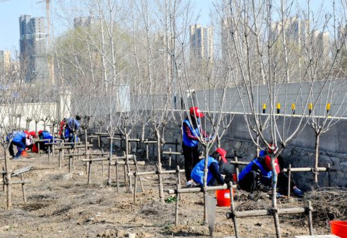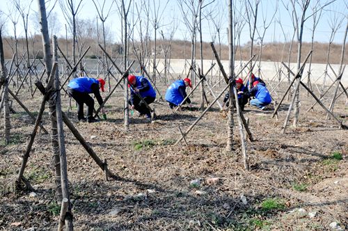 火紅的青春,在無私奉獻(xiàn)中綻放光芒。激動人心的出征儀式后,懷揣著強(qiáng)烈的自豪感,現(xiàn)場60余名共青團(tuán)員向共青林出發(fā),開始了共建共青林的第三次護(hù)林行動。水廠綠化技術(shù)人員對現(xiàn)場的志愿者們予以了熱情而細(xì)致的指導(dǎo)。手拿鐵鍬鐮刀,志愿者們分工合作,給樹木施肥及松土。春風(fēng)仍舊料峭,志愿者的心中卻一片盎然暖意。
