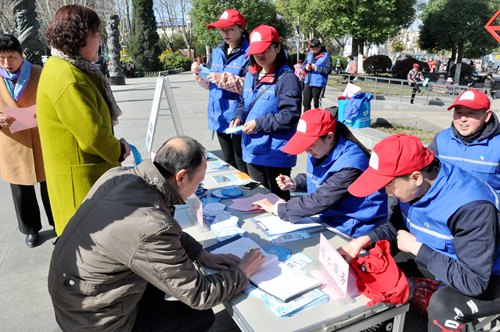 3月22日上午,公司團委組織了“小白鴿”志愿者來到市民廣場開展主題為“保護水資源  生命真永遠”的保護水源宣傳活動;顒又校驹刚邆兝脩覓鞕M幅、展示展板等形式,大力宣傳保護水源的重要性,同時向居民發(fā)放節(jié)水宣傳資料,并為居民講解“階梯式水價”、“家庭節(jié)水小常識”等各種節(jié)水知識。志愿者們對居民提出的有關(guān)節(jié)水方面的問題都耐心地予以解答,并且號召廣大居民積極參與,從身邊的小事做起,節(jié)約每一滴水。