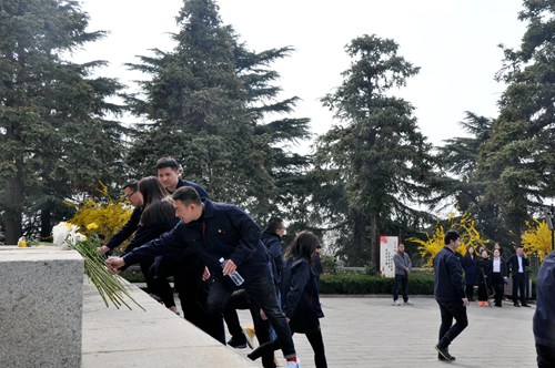 而后,在奏唱中華人民共和國國歌莊嚴、肅穆的氛圍之下,本次活動正式拉開了序幕;顒悠陂g,大家神情肅穆,在革命烈士紀念碑前默哀、集體敬獻花圈、個人獻菊花、現(xiàn)場簽名以及團員重溫入團誓詞,以緬懷先烈,表達對革命烈士的哀悼之情。掃墓活動還增加了公司團委書記董秋莉講話,她在緬懷革命烈士的同時,激勵公司的團員青年要傳承紅色基因,不忘初心,牢記使命,在實現(xiàn)中國夢的生動實踐中放飛青春夢想,在為人民利益的不懈奮斗中書寫人生華章,不負革命前輩用生命為我們換取的幸福生活。