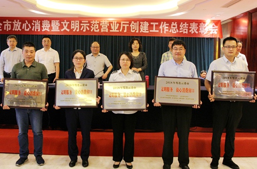 6月6日上午,市委宣傳部、市文明辦、市市場(chǎng)監(jiān)管局、市放心消費(fèi)創(chuàng)建辦、市消保委聯(lián)合召開2018年全市放心消費(fèi)暨文明示范營(yíng)業(yè)廳創(chuàng)建工作表彰會(huì)。會(huì)上,海連路營(yíng)業(yè)廳被授予“文明示范營(yíng)業(yè)廳”,連云供水分公司被授予“連云港市放心消費(fèi)創(chuàng)建工作先進(jìn)單位”,連云棲霞路營(yíng)業(yè)廳被授予“文明服務(wù)放心消費(fèi)窗口”的榮譽(yù)稱號(hào)。