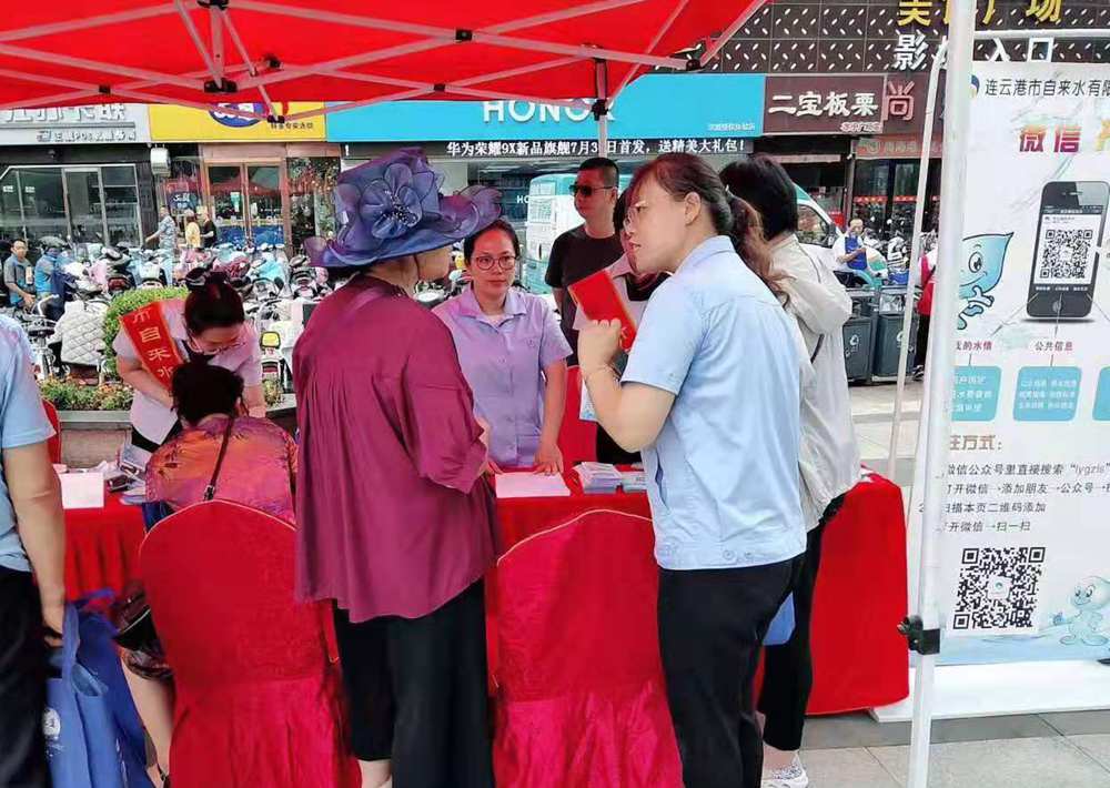 7月28日,客服中心攜手水檢中心、新海管線所、新海營(yíng)業(yè)所在蘇寧廣場(chǎng)參加由市政務(wù)服務(wù)中心牽頭的“牽手12345 為民服務(wù)解難題”為主題的志愿者服務(wù)活動(dòng)。在活動(dòng)現(xiàn)場(chǎng),志愿者們?yōu)閺V大市民講解用水知識(shí),宣傳微信、支付寶等多種交費(fèi)方式,解答市民咨詢的用水問題,傾聽、記錄對(duì)供水服務(wù)的建議,取得了良好的效果。