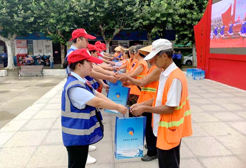 8月2日上午,來自三個(gè)團(tuán)支部共計(jì)15名青年團(tuán)員來到新海街道星化社區(qū)工作站,為現(xiàn)場(chǎng)的環(huán)衛(wèi)工人們分發(fā)了內(nèi)有藿香正氣液、清涼油、毛巾、抽紙等防暑用品組成的“愛心清涼禮包”,給環(huán)衛(wèi)工人們送去了炎炎夏日中的一絲清涼。