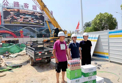 而后,副總經(jīng)理王斌同志表示:你們頂著烈日施工,為項目建設(shè)作貢獻(xiàn),向你們致以感謝和慰問,希望大家一如既往重視施工安全、施工質(zhì)量,注重勞逸結(jié)合,保持身體健康。