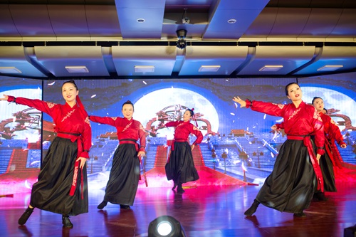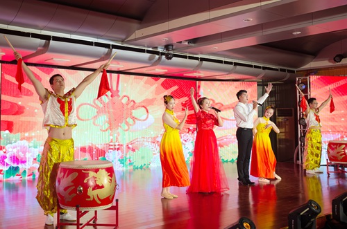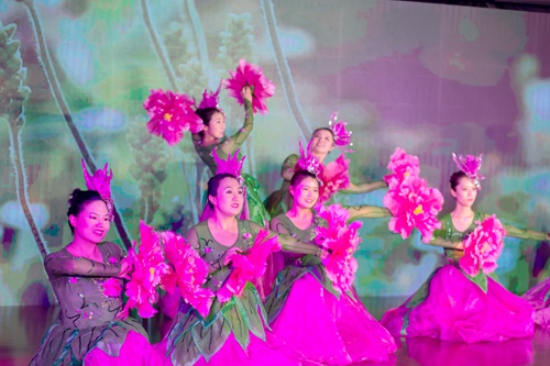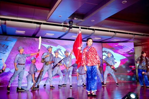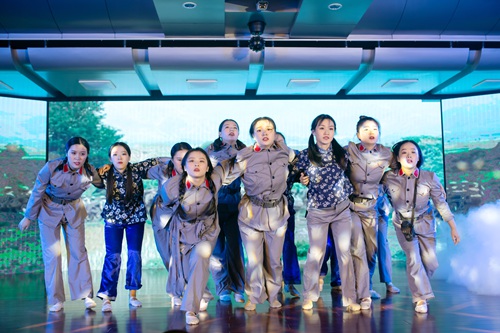 慶祝儀式后舉行了隆重而熱烈的文藝演出,演出以快閃《我和我的祖國(guó)》開場(chǎng),共分為三個(gè)篇章,第一篇章,歌舞《絨花》、《生命壯歌》、合唱《鐵道游擊隊(duì)》、《沒有共產(chǎn)黨就沒有新中國(guó)》等帶領(lǐng)我們重溫那硝煙彌漫的崢嶸歲月,中華兒女傾灑熱血、奮勇拼搏,舉全民族之力贏得了偉大的勝利,鑄就了新中國(guó)大廈堅(jiān)實(shí)的基礎(chǔ)。