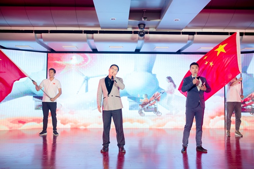 第三篇章,歌舞《紅旗飄飄》、《國(guó)家》、《我們都是追夢(mèng)人》、《幸福中國(guó)一起走》、朗誦《我驕傲、我是營(yíng)收人》,繼往開來,我們趕上了祖國(guó)走向繁榮富強(qiáng)的時(shí)代,在習(xí)總書記帶領(lǐng)下,我們闊步向前,在偉大的復(fù)興路上追逐我們的中國(guó)夢(mèng)。最后,慶;顒(dòng)在大合唱《歌唱祖國(guó)》雄壯的歌聲中結(jié)束。