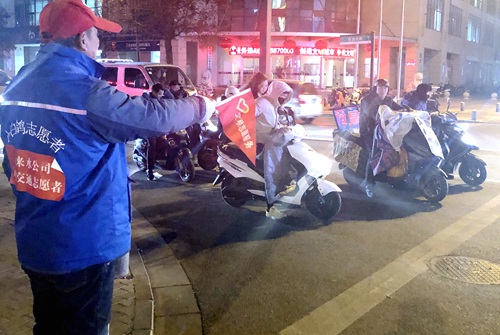執(zhí)勤活動(dòng)中,志愿者們不畏嚴(yán)寒和酷暑,手持執(zhí)勤紅旗在十字路口協(xié)助交警指揮交通。他們熱心幫扶老人兒童過斑馬線、耐心勸阻行人和非機(jī)動(dòng)車輛的不文明行為,營(yíng)造了安全有序文明的道路交通環(huán)境。